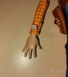 Espressione del viso, mani con le dita aperte, anello della cordicella, stella da sceriffo con la calamita dietro, gilet completamente rifatto, diamante sulla fondina, tutto identico al vero Woody.