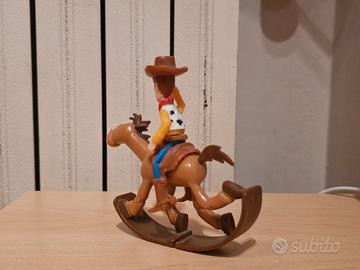 Personaggio di Woody da Toy Story, sorprese Kinder pasqua 2021. - Woody con cappello e foulard. - Cavalcabile a dondolo a forma di cavallo.
