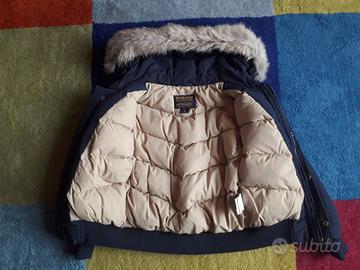 Taglia: 8 anni Colore: esterno blu - interno beige Usato in ottime condizioni Modello bomber in tessuto di misto cotone e poliammide con finitura in teflon per renderlo idrorepellente, traspirabile e antimacchia. Fodera trapuntata e imbottitura in piuma naturale ad elevato isolamento termico, cappuccio regolabile da coulisse con bordo removibile in pelliccia Murmasky, chiusura con bottoni e zip coperti, polsini e orlo in maglia a costine, tasche frontali con patta e ingresso laterale foderate in morbido pile. Esterno 60% cotone e 40% nylon, fodera 100% nylon, imbottitura 70% piumino e 30% piuma d'anatra.