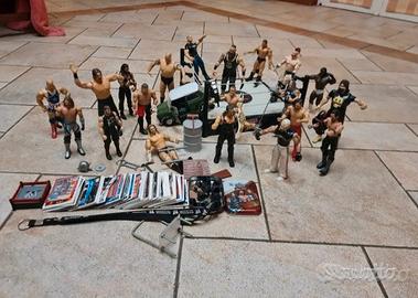 vendo molta roba sul wrestling lotta libera moltissimi personaggi con accessori carte cintura ring ect vedi foto vendo un blocco non separato 300 euro