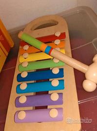 Xilofono in legno con palline e martello. Ottimo stato, completo e con scatola, come da foto. Gioco didattico, adatto per stimolare i bambini.
