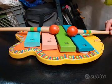 xilofono in legno per bambini con 2 bacchette, minimi segni di usura sulla vernice delle bacchette, marca Djeco