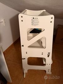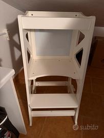 YOLEO Torre di apprendimento Transformer, Torre Montessori per bambini e neonati, pieghevole Learning Tower con lavagna bianca e nera magnetica, bianco - legno (White) Torre di apprendimento Transformer: seggiolone bambini legno facile da smontare, smontandolo diventa un tavolo da studio quando necessario. Dotato di ganci bloccabili con chiave (incluso) per una maggiore sicurezza.