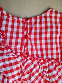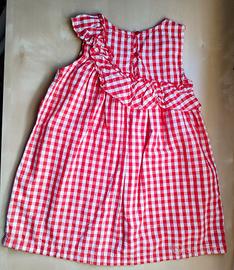 Vestito in cotone senza maniche, fantasia a quadretti bianchi e rossi, chiusura con bottoncino sul retro, ruches sul petto. Misura 4 anni. In perfette condizioni, indossato pochissime volte.