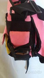 Zainetto marca "CHICCO" per l'asilo color rosa, comodo, con due tasche con cerniera sul frontale dello zaino, due tasche con chiusura a strappo sotto la pattina e due tasche laterali.