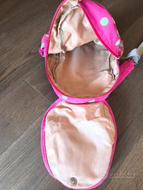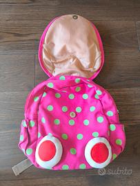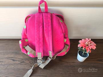 Zainetto per asilo da bambina fucsia a pois verde con coniglietto.