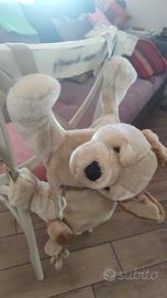 Zainetto peluche orsetto. Con cerniera e spalline per utilizzo come zainetto + maniglia per trasporto a mano (come da foto). Foderato. Incluso con lo zainetto c'è un simpatico piccolo peluche staccabile, attaccato con gancio alla cerniera.