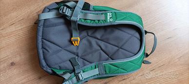 Vendo zainetto da bambino scuola elementare "Track Jack" della JACK WOLFSKIN. Come nuovo. Usato per due sole gite scolastiche. Eccezionale portabilità. Capacità 10 litri. Misure 37*23*15. Peso 360 gr. Tasche laterali in rete, più due tasche esterne. Pagato 59,95 euro. Manca targhetta dove scrivere nome o contatto telefonico, perché l'ho compilata.