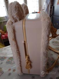 le misure sono altezza 21cm, larghezza 19. cm.Le tracolle sono di plastica dura molto resistente, all' interno rivestimento come da foto , condizioni ottime.
