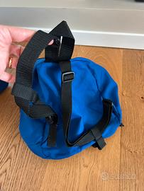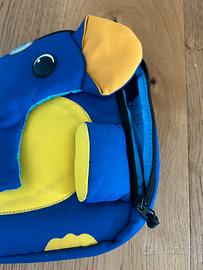 Zainetto per bambini della linea Sammies di Samsonite a forma rettangolare di elefantino. Tasca centrale con chiusura a strappo e apertura superiore con zip. Cinghie sulle spalle regolabili. Tessuto lavabile. In ottimo stato. Bordo inferiore leggermente usurato (vedere ultima foto)
