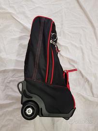 Zainetto trolley ufficiale del Milan, We are AC Milan, con 2 rotelle e stringhe che possono scomparire all'interno della tasca posteriore.