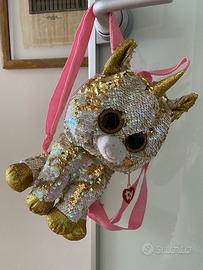 Zainetto Ty, ricoperto di paillettes, a forma di unicorno con portamonete uguale, nuovo senza etichetta.