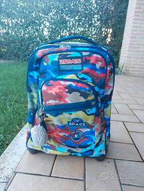 2) Zaino Trolley SEVEN, Blu, Camo Stains, 2 in 1, Zaino con Carrello Fisso, utilizzabile anche come trolley per i viaggi. Valore di mercato oltre i 100€, vendesi a 70€