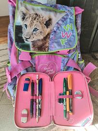 Zaino per la scuola originale WWF, fantasia Leoncino, estensibile e molto capiente, con diverse tasche, in ottime condizioni, vendo a € 30,00.