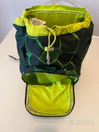 Leggero e capiente, ha lo schienale regolabile in altezza, il fondo stabile e resistente all'acqua. Lo zaino presenta la stessa caratteristica di uno zaino da trekking: gli spallacci ricurvi e può essere utilizzato dalla prima elementare fino alla quinta!. La struttura ergonomica dello schienale imbottito accompagna il bambino durante la sua crescita perché può essere regolato in base alla sua altezza, da un minimo di 1 mt fino ad 1,50 mt.