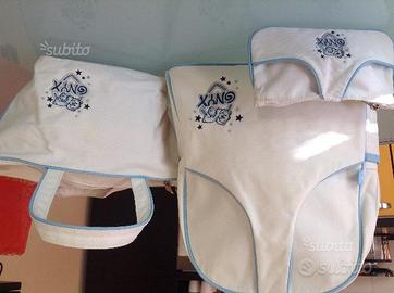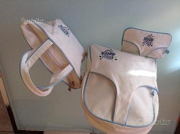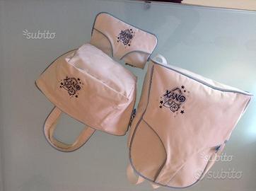 Zaino,borsa e portafoglio ONYX di colore bianco con bordino azzurro . Come vedete nella foto sono in ottimo stato