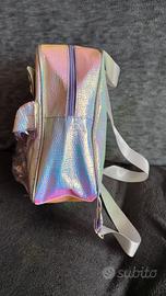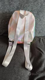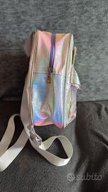 Zaino da spalla per bambina,colore rosa glitterato,con applicazione patch di 3 farfalle,chiusura con cerniera,tasca esterna, condizioni ottime.Misure circa 30 x 23 centimetri