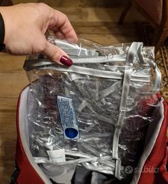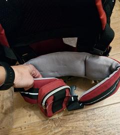 Zaino tecnico porta bambini fino a 15 kg. Leggero e pratico con tettuccio parasole e mantella parapioggia. Ottime condizioni usato poco.