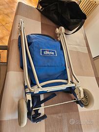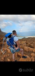 Zaino chicco usato per le escursioni al mare e in montagna comodo dai 6 mesi ai due anni e mezzo circa. Comodo perche' se si aprono le gambe posteriori si puo' appoggiare consentendo di essere anche autonomi se si fosse soli con il bambino. Presente anche tendina parasole per proteggere dal sole.