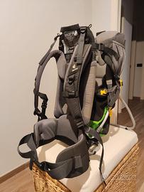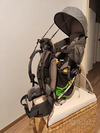 Zaino porta bambino robusto, comodo e ben ventilato. Condizioni ottime, usato poco - imbottiture, cuciture, cerniere e cinghie integre e perfettamente funzionanti. Caratteristiche principali: - leggero e ventilato: schienale aerato, spallacci e cinture imbottiti e regolabili - seduta regolabile in altezza a profondità, facile accesso laterale - parasole incluso e rimovibile - adatto ai bambini fino a 18 kg - compatibile con accessori della marca Deuter - Tasca posteriore e di buona capacità - stand metallico richiudibile, molto utile per posizionare il bambino da terra.