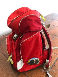 Zaino Ergobag bambina con spallacci ergonomici e possibilità di regolazione in base all’altezza. Tre spazi interni e tasca frontale. Astuccio a tre scompartimenti e copri zaino (parapioggia). Ritiro zona Bassano del Grappa o Rosà. No spedizione!!