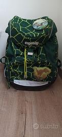 Zaino molto capiente per la scuola elementare, lo schienale si regola in base all' altezza del bambino. Personalizzabile con "adesivi" in velcro viene venduto con 2 a tema dinosauri e 5 a tema auto.