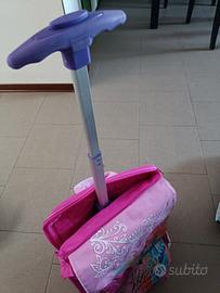 Zaino in tessuto con grafiche personalizzate sulla patella, tasca frontale e bande laterali: articolo impreziosito da ricami ed applicazioni in tessuto. La cartella presenta spallacci regolabili (ed imbottiti), completo di schienale ergonomico,ampio vano interno per riporre libri e materiale scolastico di grandi dimensioni e due tasche con l'accesso dall'esterno (una posta sulla patella superiore e una posta sulla patella inferiore). Sui due lati è presente una cerniera che se aperta permetterà di aumentare il volume di carico dello zaino, creando un nuo