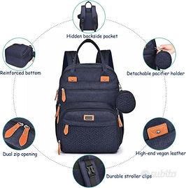 Zaino multifunzionale: permette di trasportarlo in diversi modi: come zaino da viaggio, borsa per il trasporto o borsa per il passeggino. Gli spallacci ergonomici imbottiti consentono di trasportarlo comodamente tutto il giorno. Design intelligente per mamme e papà moderni. È anche un regalo ideale per baby shower