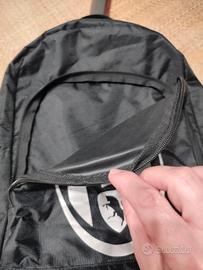 Tenuto bene, è solo lievemente segnato sulla stampa "Juventus", sul fondo zaino dove poggia al terreno e la cerniera in alcuni punti ha perso il colore nero (vedere foto).