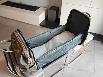 Design pieghevole con materasso, il lettino pieghevole può facilmente trasformarsi in uno zaino e richiede solo un minuto per creare un gioco da bambini caldo ed esclusivo e spazio per dormire. Lo spazio interno extra del lettino per dormire lo rende una borsa per pannolini alternativa. Inoltre viene fornito con una tracolla ergonomica che ti aiuta a prenderlo senza sforzo;