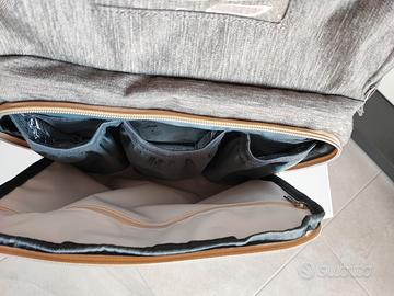 Il lettino da viaggio pieghevole è dotato di culla nella tasca anteriore, fasciatoio portatile, tasca isolata, ampio spazio per tutte le tasche essenziali ed esterne. Borsa con cordoncino, esclusivo telefono cellulare antifurto e tasche per la privacy con cerniera per oggetti personali. La sua grande capacità può contenere un laptop o un tiralatte.