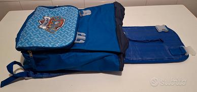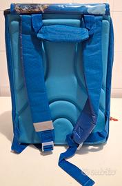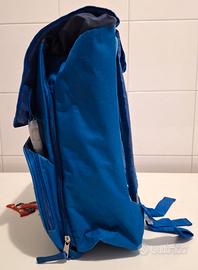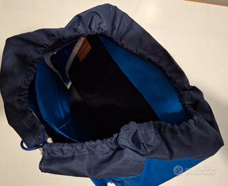 Lo zaino è praticamente nuovo, ha un manico e due bretelle da spalla regolabili, tasca esterna con cerniera e due tasconi interni, con chiusura a laccio scorrevole.