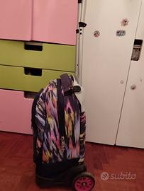 zaino Seven con rotelle e manico allungabile. molto capiente. ideale per la scuola elementare e media. lo zaino si può estrarre dal carrello ed utilizzare anche solamente con le cinghie sulle spalle. manico difficoltoso a scendere. zona Roma appia