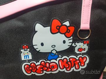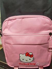 Sanrio Zaino Hello Kitty Sanrio per donna, stile college, tessuto oxford con cinghie regolabili, tema a cartoni animati, resistente alle macchie con disegno di ali angeliche, chiusura con cerniera e fodera in poliestere, borsa alla moda con stampa animale e con bordi dipinti