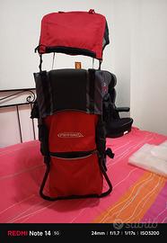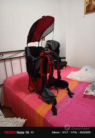 Vendo zaino per trasportare bambini ottimo per gite o lunghe camminate. Comodo parasole. Adattabile 6/24 mesi. Come nuovo. Ritiro a domicilio. Insieme regalo alzatina con schienale giordani per automobile. Braccioli regolabili.E2 15/36kg