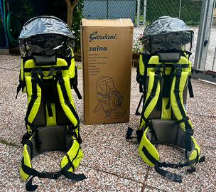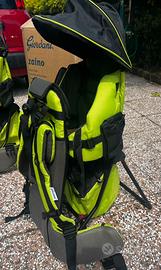VENDO 2 ZAINI, €50 CADAUNO. Pratico zaino tecnico per le vostre passeggiate. E’ leggero, in alluminio, con capottina parasole amovibile e protezione pioggia, imbottito e con seduta interna regolabile in altezza. Aperto sta in piedi da solo, è dotato di pratici spallacci super imbottiti per il massimo comfort, di tasche portaoggetti e portabiberon. E’ adatto per bambini da 6 mesi circa fino a un massimo di 15 kg. Peso articolo: 3,5 kg Usato pochissimo!!! Consegna a mano a Venezia, Jesolo e Cavallino Treporti.