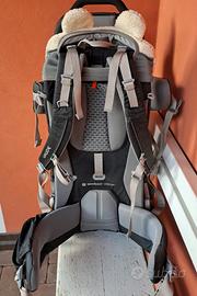 Zaino come nuovo di alta qualità per le lunghe passeggiate e garantisce il massimo comfort sia per il bambino, sia per chi lo indossa. Perfettamente equipaggiato, è adatto a bambinifino a 18 kg di peso (22 peso max portabile anche con oggetti). Affidabile e molto confortevole, è dotato di un sistema dorsale ammortizzato, cintura regolabile che permette di camminare con la massima facilità grazie alla buona distribuzione del peso. La seduta del bambino è ben curata, in quanto i poggiapiedi sono posizionati sui lati e possono essere regolati perfettamente in base alla lunghezza delle gambe. In questo modo si evitano le formiche nei piedi. Questo modello è dotato di ampie tasche per bottiglie d'acqua, pannolini e altri piccoli oggetti essenziali. Inoltre, sul fondo della borsa è presente un ampio scomparto per riporre vestiti, giacca, giocattoli e picnic.