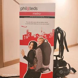Vendo zaino porta bimbi, usato poco e in ottime condizioni. Completo di piccolo telo x il cambio pannolino, cappottina x riparare da sole e pioggia, fascia riduttore x i bimbi più piccoli. Marca Phil &Teds. Nessuna usura, tranne qualche graffio sul perno per appoggiarlo a terra, come da foto.