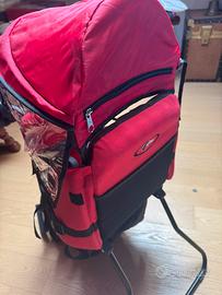 Vendo zaino porta bambino della ANDE, marchio leader per l'attrezzatura da montagna e outdoor. Lo zaino è robusto, sicuro e progettato per garantire il massimo comfort sia al genitore che al bambino durante escursioni, trekking o semplici passeggiate in città. Caratteristiche principali: • Struttura Autoportante: Grazie al cavalletto in alluminio, lo zaino resta in piedi da solo quando appoggiato a terra, facilitando la seduta del bambino. • Protezione Completa: Dotato di capottina parasole estensibile e copertura parapioggia trasparente (come visibile in foto) per proteggere il piccolo da vento e intemperie. • Comfort Ergonomico: Schienale imbottito traspirante, spallacci regolabili e ampia cintura ventrale per scaricare il peso in modo ottimale sulle ali iliache. • Sicurezza: Sistema di cinture interne per assicurare il bambino in modo saldo. • Spazio Extra: Ampio vano portaoggetti sotto la seduta e tasche a rete per biberon, snack o accessori.