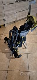 Vendo zaino porta bambino Salewa con sistema Multifit System, regolabile in base all’altezza di chi lo indossa e molto comodo grazie a spallacci imbottiti e fascia lombare.