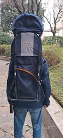 zaino deuter kid carrier plus con struttura tubolare metallica leggerissimo. con tasca sotto il bambino e parasole testa bimbo estraibile. cinture anteriori per scarico peso in vita. ideale per trekking o camminate