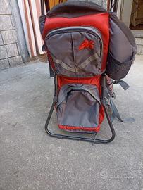 bellissimo zaino porta bimbo, in perfette condizioni, dotato di tante tasche, con mantelline al suo interno e tettoia i metallo e tela che si monta e si smonta . Come nuovo