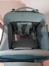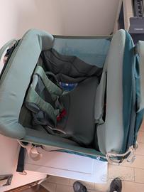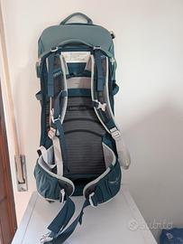 Con parasole integrato estraibile e riponibile in tasca dedicata. Lunghezza del busto regolabile di 15 cm, con telaio leggero in acciaio inossidabile. Spalle imbottite in schiuma traspirante, con schienale ergonomico, ammortizzato e traspirante. Con pratici piedini per appoggiarlo in verticale. Usato poco, in ottimo stato