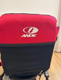 Vendo zaino porta bambino tecnico della Ande, ideale per escursioni in montagna, trekking o passeggiate all'aria aperta in totale sicurezza e comfort. Lo zaino è robusto ma leggero, progettato per distribuire bene il peso grazie allo schienale imbottito e agli spallacci regolabili. Caratteristiche principali: • Struttura autoportante: Cavalletto in alluminio richiudibile che permette di appoggiare lo zaino a terra in modo stabile. • Protezione: Tettuccio parasole/parapioggia incluso (e removibile). • Comfort bambino: Seduta ergonomica regolabile con cinture di sicurezza interne. • Comfort genitore: Ampio fascione ventrale imbottito per scaricare il peso sui fianchi e schienale traspirante. • Spazio extra: Ampia tasca portaoggetti posteriore e vano inferiore per riporre tutto il necessario (cambio, pappa, giochi).