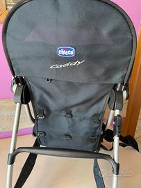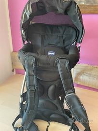 Zaino porta bambino, marca Chicco. Si presenta in ottime condizioni, poiché è stato utilizzato poche volte. DETTAGLI STRUTTURALI: - spalline regolabili ed ergonomiche - sulla spallina sx presenta un piccolo porta oggetti/cellulare - cinghie di sicurezza per legare il bambino - schienale imbottito - copertura doppia funzionalità: para sole e para pioggia - portata massima 15kg