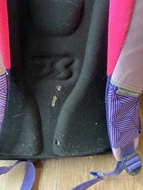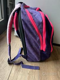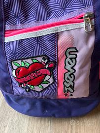 Zaino 7Sevendi colore viola e rosa, tenuto bene. Adatto sia per le elementari che per le medie, capiente e con numerose cerniere.
