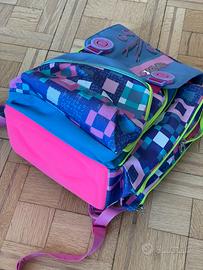 Zaino scuola bambina Seven con doppio scomparto, tasca superiore e tasca inferiore, zip di espansione e tasca a scomparsa per ombrello. Condizioni più che buone.