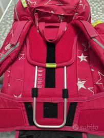 Zaino spazioso e robusto, con molte tasche/scomparti. Anche se è vuoto rimane in posizione verticale grazie alla base semirigida consentendo l'accesso facilitato a libri, quaderni astucci .
