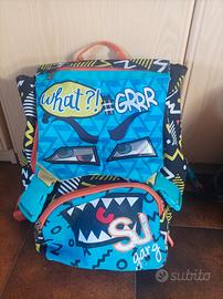 2 pattine calamitate con grafiche diverse e applicazione sulla tasca frontale calamitata con 2 grafiche diverse. Misura: Chiuso: 27 x 41 x 16 Cm Aperto: 27 x 41 x 22 Cm