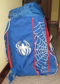 Causa inutilizzo per passaggio a scuola secondaria, vendo Zaino scuola estensibile Spiderman usato ma in perfette condizioni, come nuovo, comprensivo di due capienti scomparti interni separati, una tasca frontale (con logo del ragno) con chiusura velcro, un'altra tasca a tutto formato sulla pattèlla superiore con chiusura a cerniera e fibbie di chiusura zaino, schienale preformato e spallacci imbottiti regolabili: vedi foto.